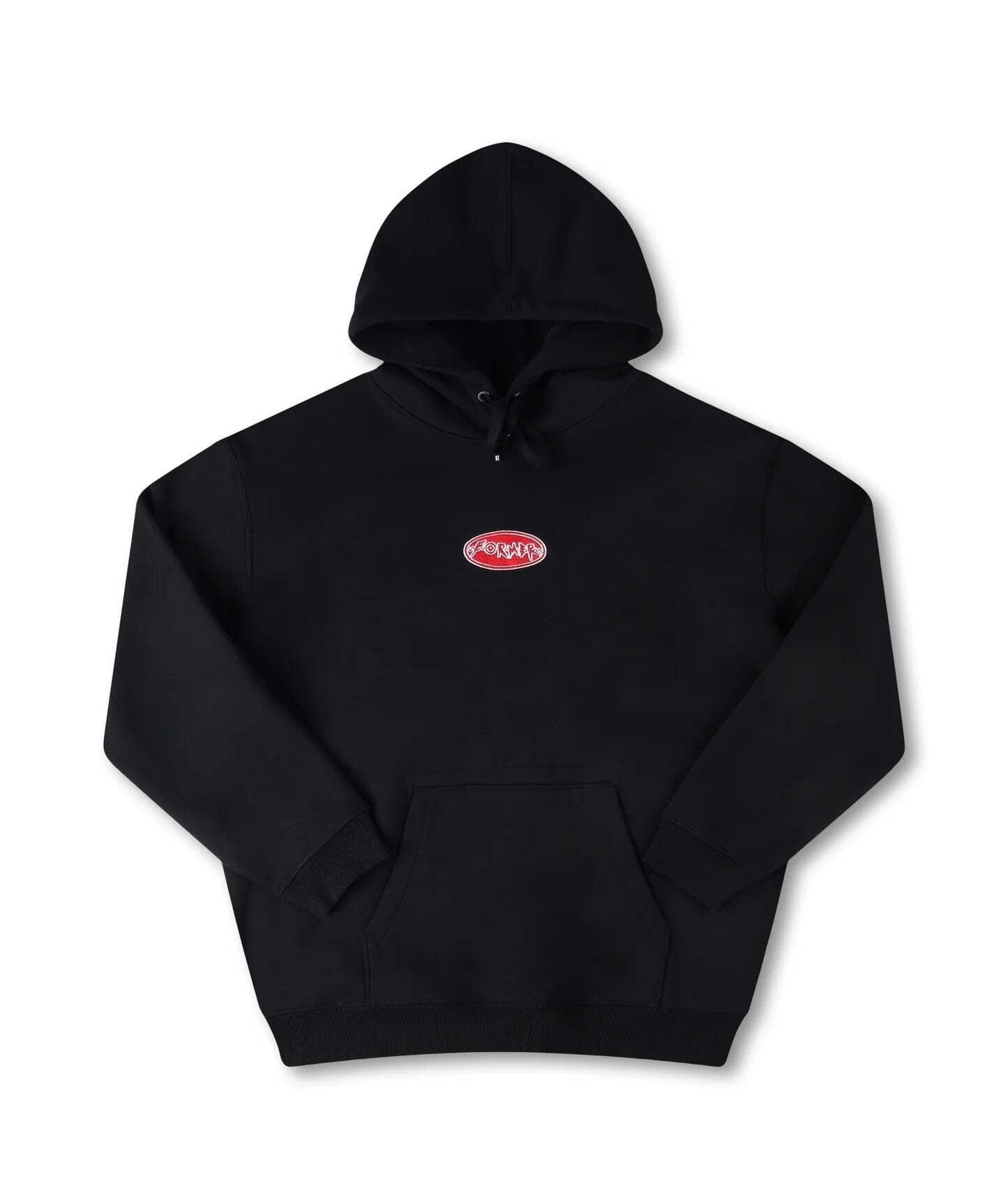 320GSMのプレミアムコットンフェイスの裏起毛(綿50%、ポリエステル50%)を使用し、暖かさと快適さを追求しました。スタンダードフィットを採用し、フロントの刺繍、フードにはフランチャイズロゴの同系色刺繍、オリジナルのメタルアグレットが特徴です。